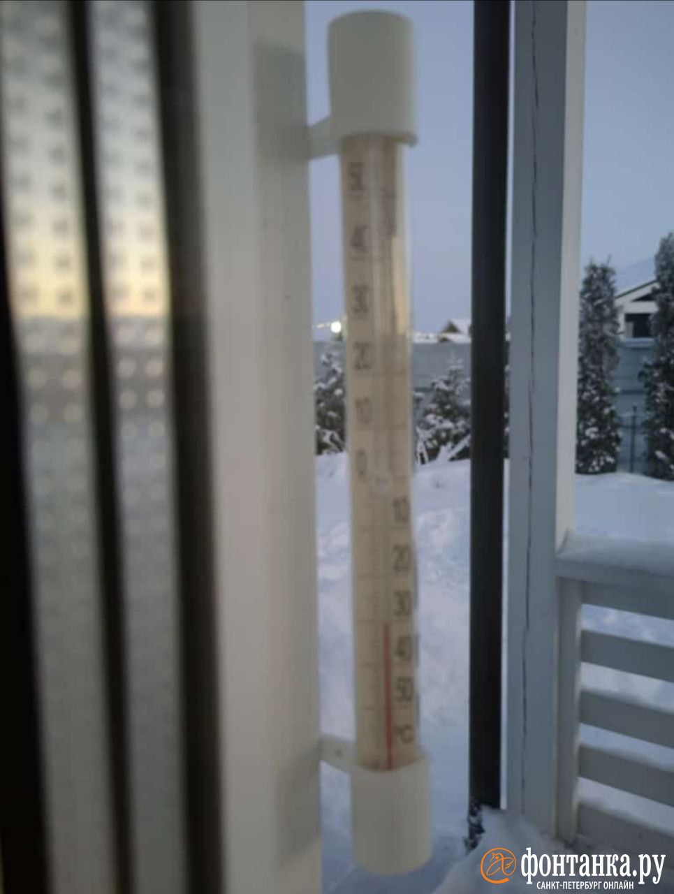 К 16 часам в Петербурге установились -18 градусов, хотя данные разнятся. Как сообщают читатели «Фонтанки», в некоторых районах Ленобласти столбик термометра опустился ниже 32 градусов.