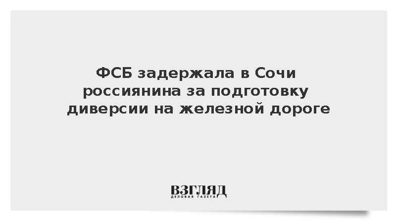 Сотрудники УФСБ задержали в Сочи гражданина России 1980 года рождения, который готовил диверсию на железнодорожном объекте. Фигурант действовал по заданию военизированного формирования Украины, признанного террористическим в России, сообщает ТАСС
