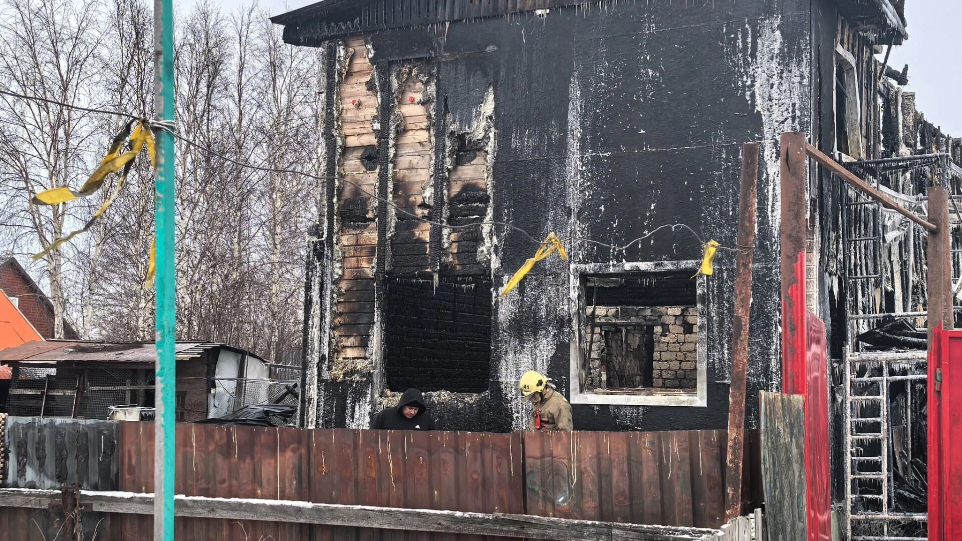 «Когда Женю провели, мы туда (к дому, — Прим. „Муксуна“) дошли, я услышала дикий вой. Я думала, может Лиля с детьми, может испугались или еще что. Открываю дверь, а там Соня и ее парень. Они спали на втором этаже, Леха проснулся, услышав запах гари, вроде как посмотрел в окно и увидел огонь <…> Они вылезли в окно и спустились по строительным лесам. Когда они спускались, стучали по окнам, но уже никто не реагировал», — добавляет Наталья.
