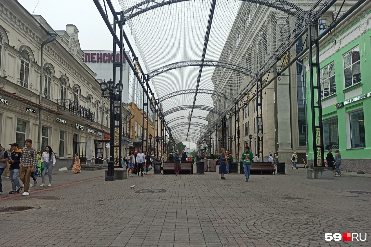 Еще одно популярное место — пешеходная улица Вайнера, где недавно появился огромный навес. Пока он еще не работает, но через неделю на нем будут показывать кадры из истории города, достопримечательности, звездное небо и салют. Даже интересно, как это всё будет выглядеть, и жаль, что не удалось застать.