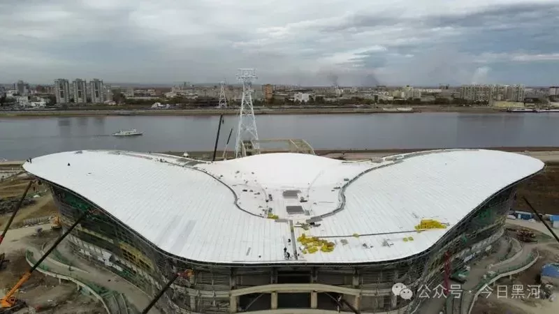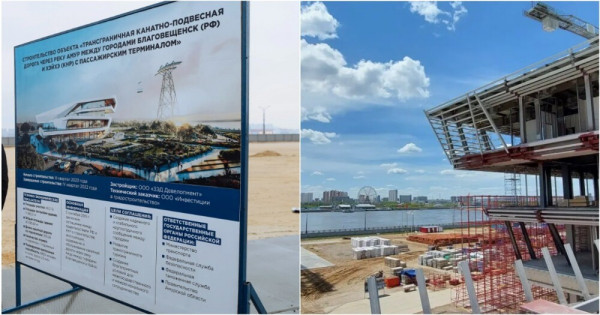 В настоящий момент стройка идет синхронно на приграничных берегах. Китайская строительная площадка проекта китайско-российской трансграничной канатной дороги расположена на острове Дахэйхэ в городе Хэйхэ.