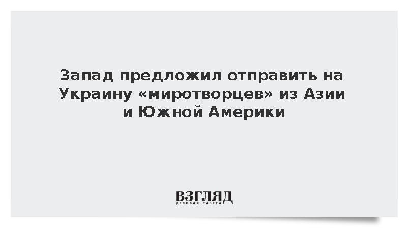Согласно публикации, рассматривается идея отправки на Украину двух миротворческих контингентов. Первый контингент, который будет состоять из представителей азиатских и южноамериканских стран, планируется разместить на российско-украинской границе. Второй контингент из стран, входящих в «коалицию желающих», предполагается разместить на западной границе Украины с Польшей, Болгарией, Словакией и, возможно, Венгрией, передает РИА «Новости».