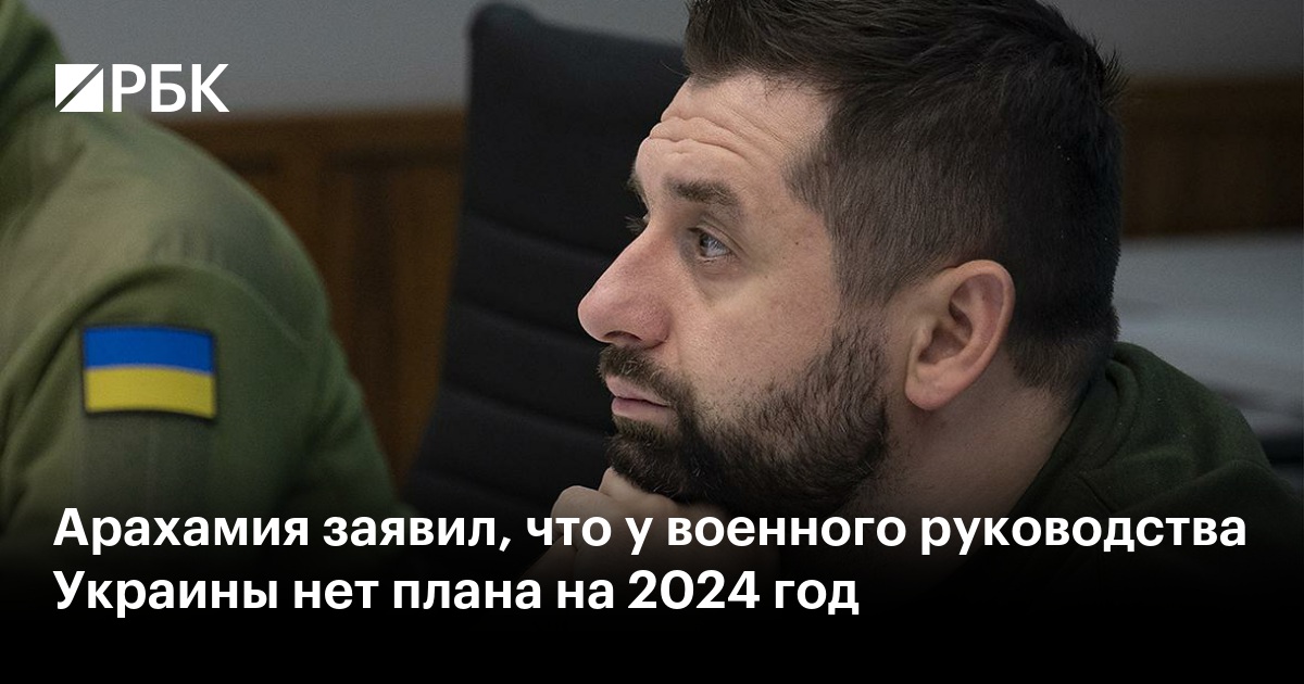 У военного руководства Украины нет плана ведения боевых действий в следующем году, заявил лидер фракции «Слуга народа» в Верховной раде Давид Арахамия в интервью журналистке телеканала «1+1» Наталье Мосейчук, оно опубликовано на ее YouTube-канале.