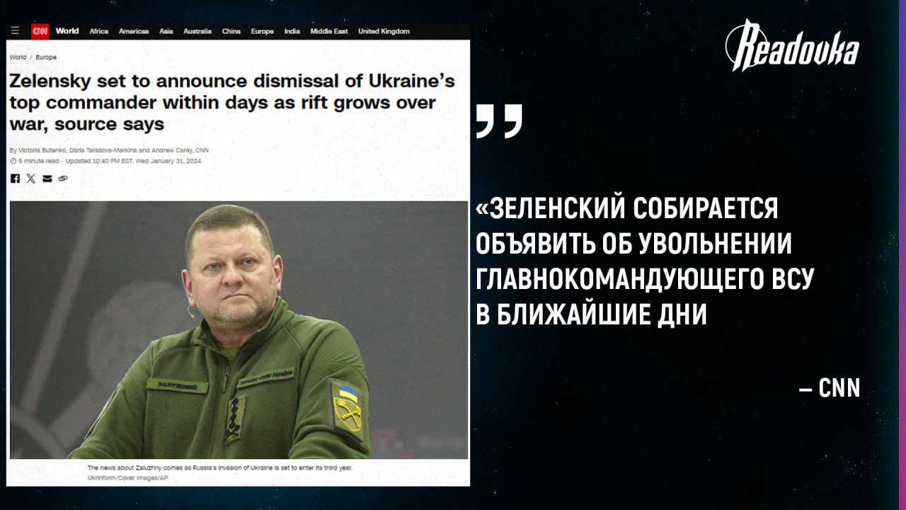 Избавление от Залужного станет или началом масштабного противостояния военной и политической ветви власти или его концом, так как раскол между ними наметился уже давно. Такое решение Зе связывают с замедлением поставок помощи от стран коллективного запада и провалом контрнаступления, после которого Залужный заявил о необходимости могилизовать еще пол миллиона украинцев, но донельзя разворованная киевская казна не в состоянии их содержать.