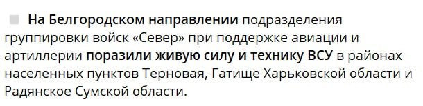 В сводках российского минобороны впервые появилась группировка «Север», которая действует на границе Харьковской и Сумской области.