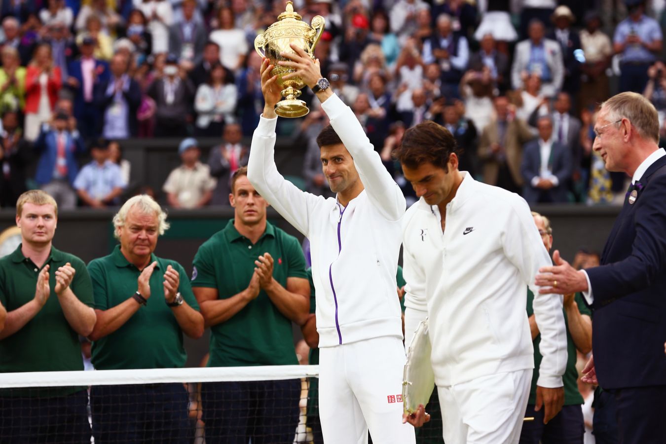 Ещё один легендарный матч, считающийся классикой. Первый сет прошёл в равной борьбе. По ходу партии брейк-пойнт был только у Федерера, а на тай-брейке были настоящие качели, сильнее в которых оказался Джококвич. В начале второго сета у серба последовал спад — отыграться после 0:4 уже не было возможности. В третьей партии швейцарец смотрелся чуть лучше, однако на тай-брейке чуть сплоховал. Четвёртый сет во многом напомнил второй, хотя счёт оказался более приличным. Роджер в пятом гейме сделал брейк и быстро закрепил успех. Один брейк в концовке Новак отыграл, но совсем вернуться в игру уже не успел. В решающем сете сначала Джокович вёл с брейком, а потом инициатива перешла к Федереру, но Новак отыграл два матчбола и подачу на матч соперника. Вот так серб выиграл свой пятый Уимблдон и 16-й мэйджор.