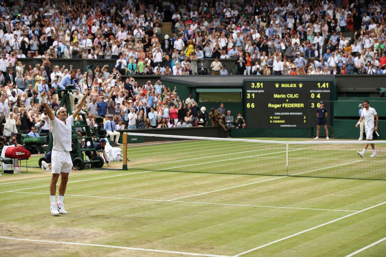 Восьмой, последний титул Федерера на Уимблдоне. Этот матч швейцарец выиграл фактически в одну калитку. Чилич играл не на своём уровне, часто ошибался и не раз вызывал врача на корт. После игры Федерер не смог сдержать слёз от нахлынувшего волнения. А его соперник заявил, что никогда не снимался по ходу матча, потому и в этот раз решил не изменять традиции.