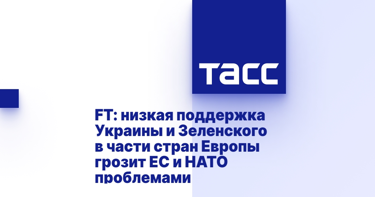 ЛОНДОН, 15 июля. /ТАСС/. Низкий уровень поддержки президента Украины Владимира Зеленского и оказания военной помощи Киеву в некоторых странах Европы грозят проблемами для ЕС и НАТО. Об этом пишет в субботу газета Financial Times (FT).
