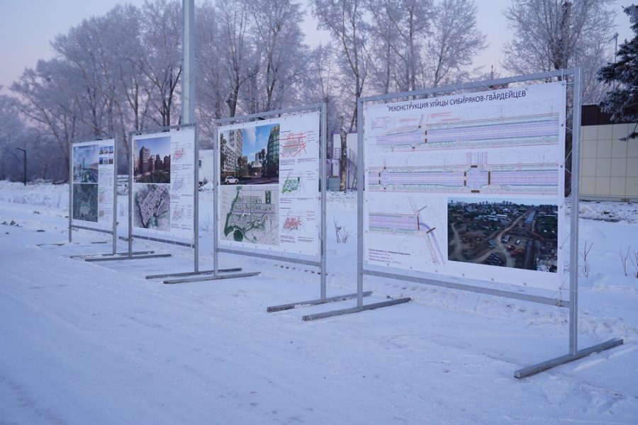 В ходе реконструкции на улице Сибиряков-Гвардейцев выполнили общую вертикальную планировку, построили ливневую канализацию, обновили дорожное полотно, сделали пешеходные тротуары, совмещенные с велосипедными дорожками. Проведена высадка деревьев, установлены светофоры и средства фото-видео фиксации. Обустроены 20 остановочных павильонов.