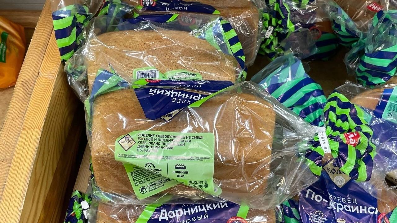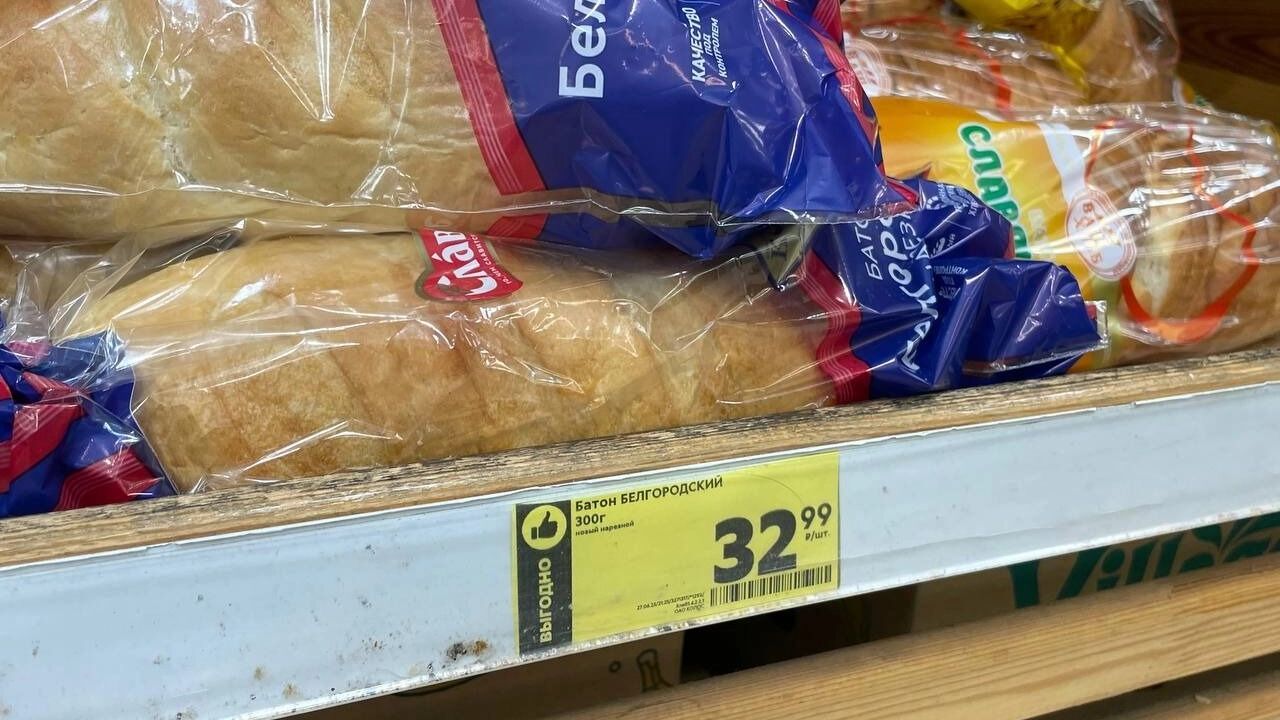 Дальше мы пошли по хлебобулочным: нужно было найти хлеб «Дарницкий», 650 грамм, за 20 рублей и безымянный батон, 300 грамм, за 18 рублей. Обе позиции мы нашли, только цены вновь разнились со списком мэра. Ближе всего оказался батон, только не безымянный, а «Белгородский», который стоил 32 рубля. Стоимость чёрного хлеба от цены Демидова отличалась — он был на 19 рублей дороже. На ценнике красовалось 39 рублей и снова пометка: «Выгода. Низкие цены надолго».