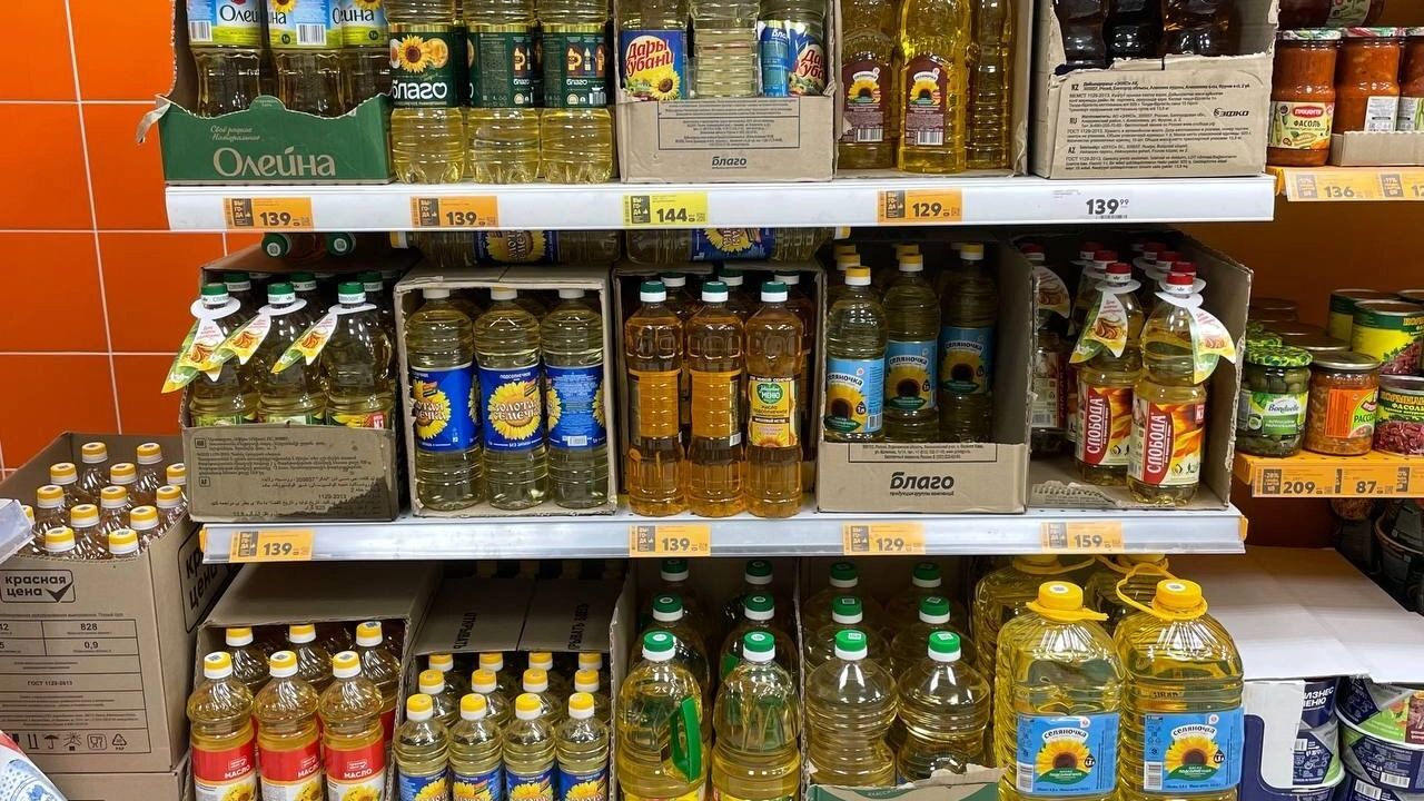 Следующий лот — подсолнечное масло за 104 рубля. Эта цена тоже оказалась несуществующей. На ценниках красовались самые разные цены — от 74 рублей за пол-литра до 159 за литр, но к 104 рублям ничего и не было и близко.
