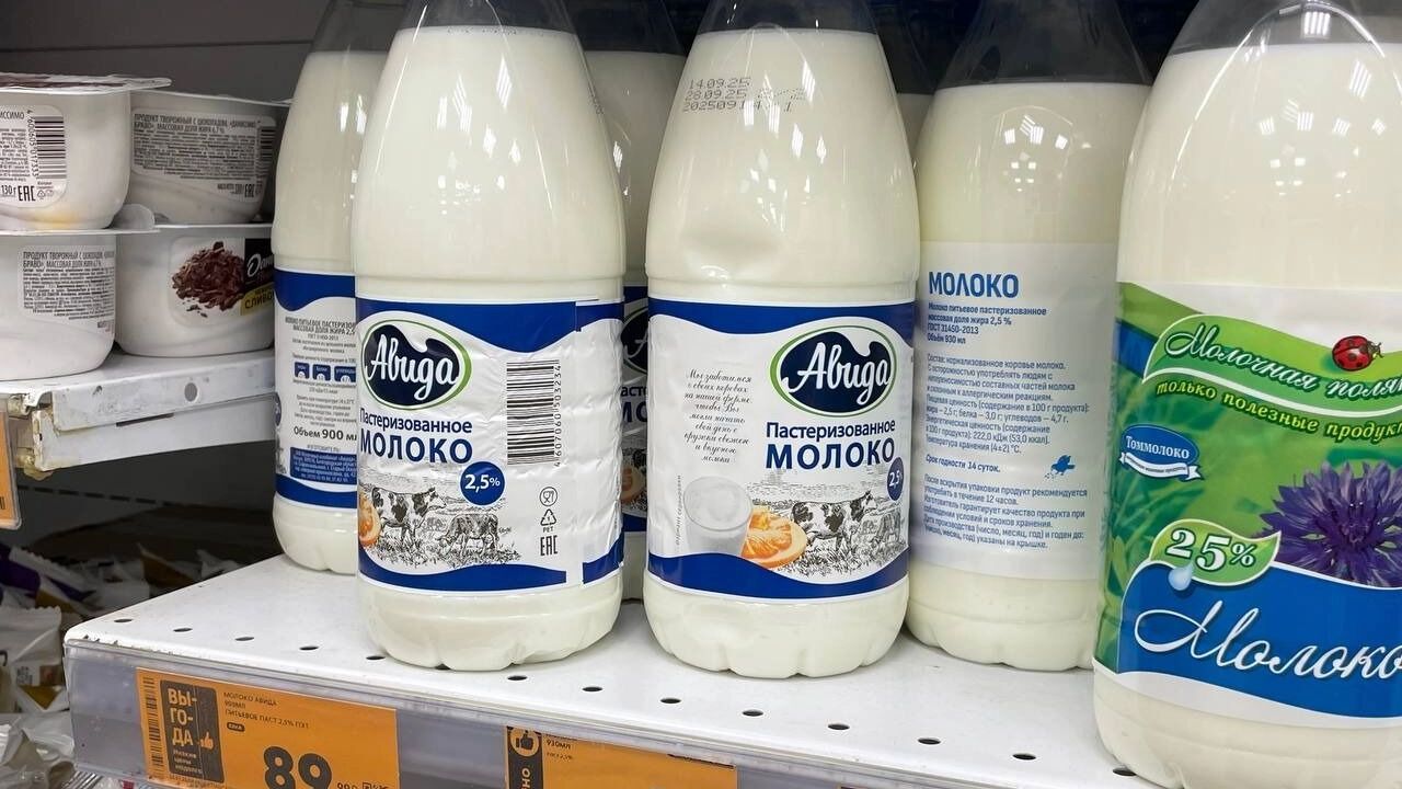 Ещё одна позиция — пастеризованное молоко 2,5%. По списку мэра оно должно стоить 56 рублей. В магазине мы его действительно обнаружили. Это стало нашим первым попаданием в список чиновника. Однако и здесь не всё так просто. Ценник-то есть — на молоко «Утро в Шебекино», но самого товара нет.