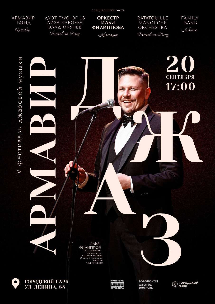 Информация на этой странице взята из источника: https://gorodarmavir.ru/news/kultura-i-sport/v-armavire-20-sentyabrya-v-gorodskom-parke-proydet-festival-armavir-dzhaz/