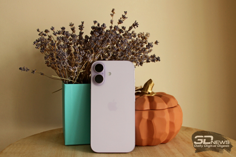 Вынужден признать, что, говоря о полном отсутствии внешних изменений в iPhone 17, я слегка слукавил. На кое-что вдохновения дизайнеров Apple всё же хватило — окрасить корпус в новые цвета. Базовые «айфоны» в этом году доступны в голубом, зелёном (шалфейном) и фиолетовом (лавандовом) цветах, а также в традиционных чёрном и белом вариантах. Ко мне на обзор попал, на мой взгляд, один из самых интересных — лавандовый.
