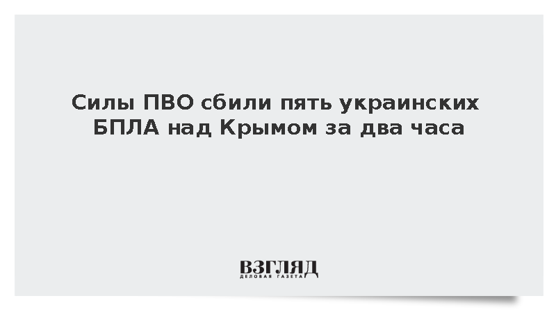 Как передает Минобороны России, в небе над Крымом с 7.00 до 9.00 по московскому времени силы ПВО сбили пять беспилотных летательных аппаратов самолетного типа.