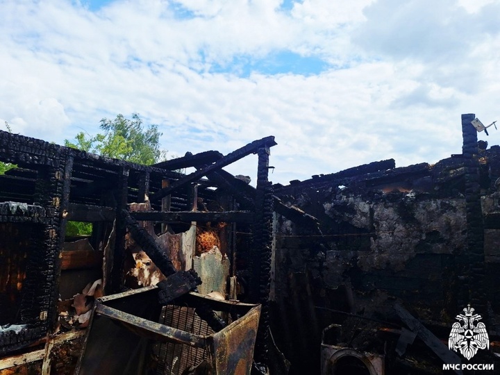 Однако, в результате пожара, сгорела почти вся кровля, дом значительно повреждён огнем изнутри, выгорели две деревянные пристройки.