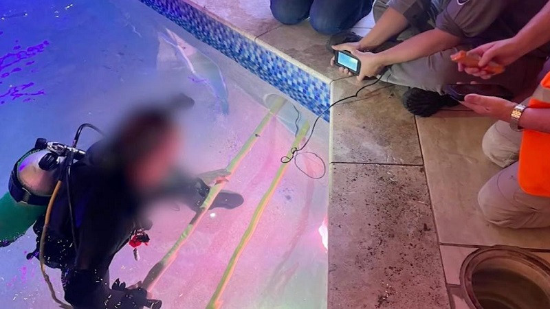 Бассейн было решено осушить, после чего его трубы были обследованы при помощи специальной камеры — именно в одной из них и нашли ребёнка. По словам спасателей, по этой трубе вода должна была поставляться в бассейн. Рядом с ней находилась другая труба с фильтром, через которую вода должна была уходить из бассейна. По какой-то причине, трубы в этот день работали неправильно.