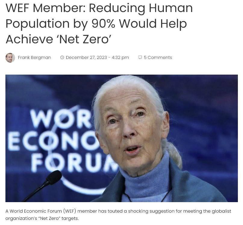 Гудолл сказала своим коллегам-глобалистам, что они могли бы спасти планету от глобального потепления, если бы население Земли было на 90% меньше. @banksta