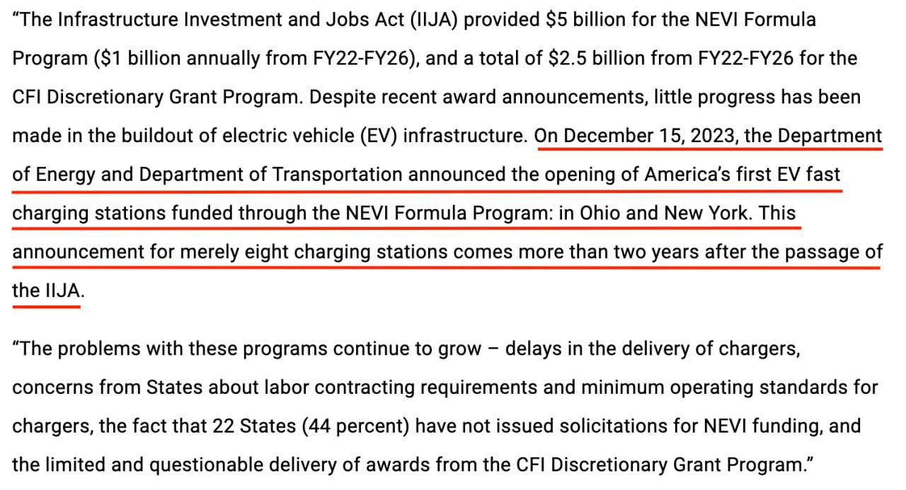 Национальная программа США по созданию инфраструктуры зарядки электромобилей стоимостью 5 миллиардов долларов, принятая в 2021 году, на данный момент привела к построению восьми зарядных станций