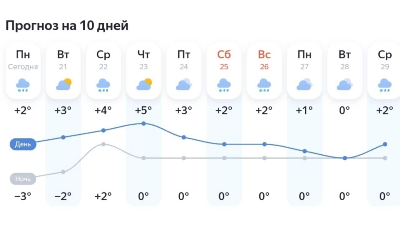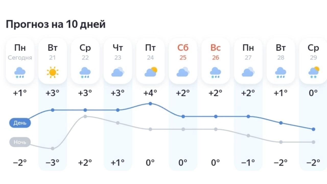 В Нефтеюганске на этой неделе будет достаточно много пасмурных дней с дождем и мокрым снегом — понедельник, среда и все выходные. Солнце обещают только во вторник, а четверг–пятница будут серыми, но без осадков. Дневные температуры составят от +2 до +4 градусов, ночные — от -3 до +2 градусов.
