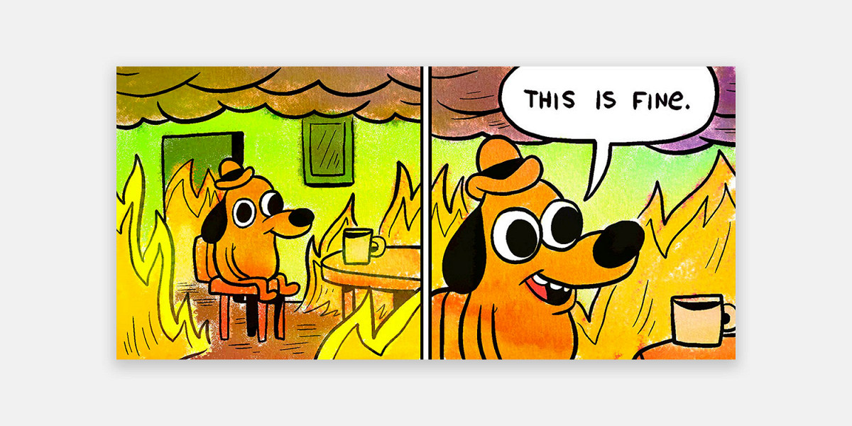 Объясняя со своей стороны ее популярность, комиксист предполагал, что ощущение, описанное картинкой, знакомо большинству людей: «„Вокруг меня все горит дотла, но я должен улыбаться“. Это обычная человеческая реакция — задать себе вопрос „Ну, и что я собираюсь с этим всем делать?“».