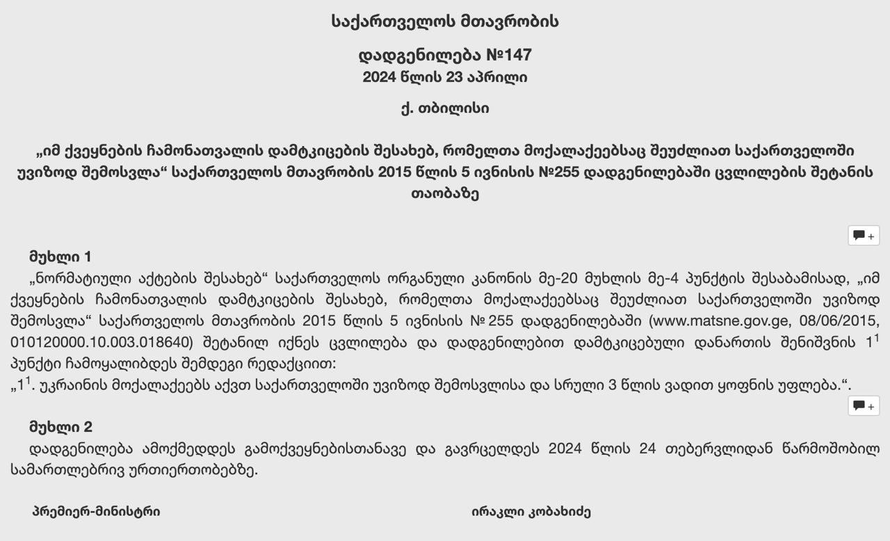 Украинцы смогут находиться в Грузии без визы на протяжении 3 лет,