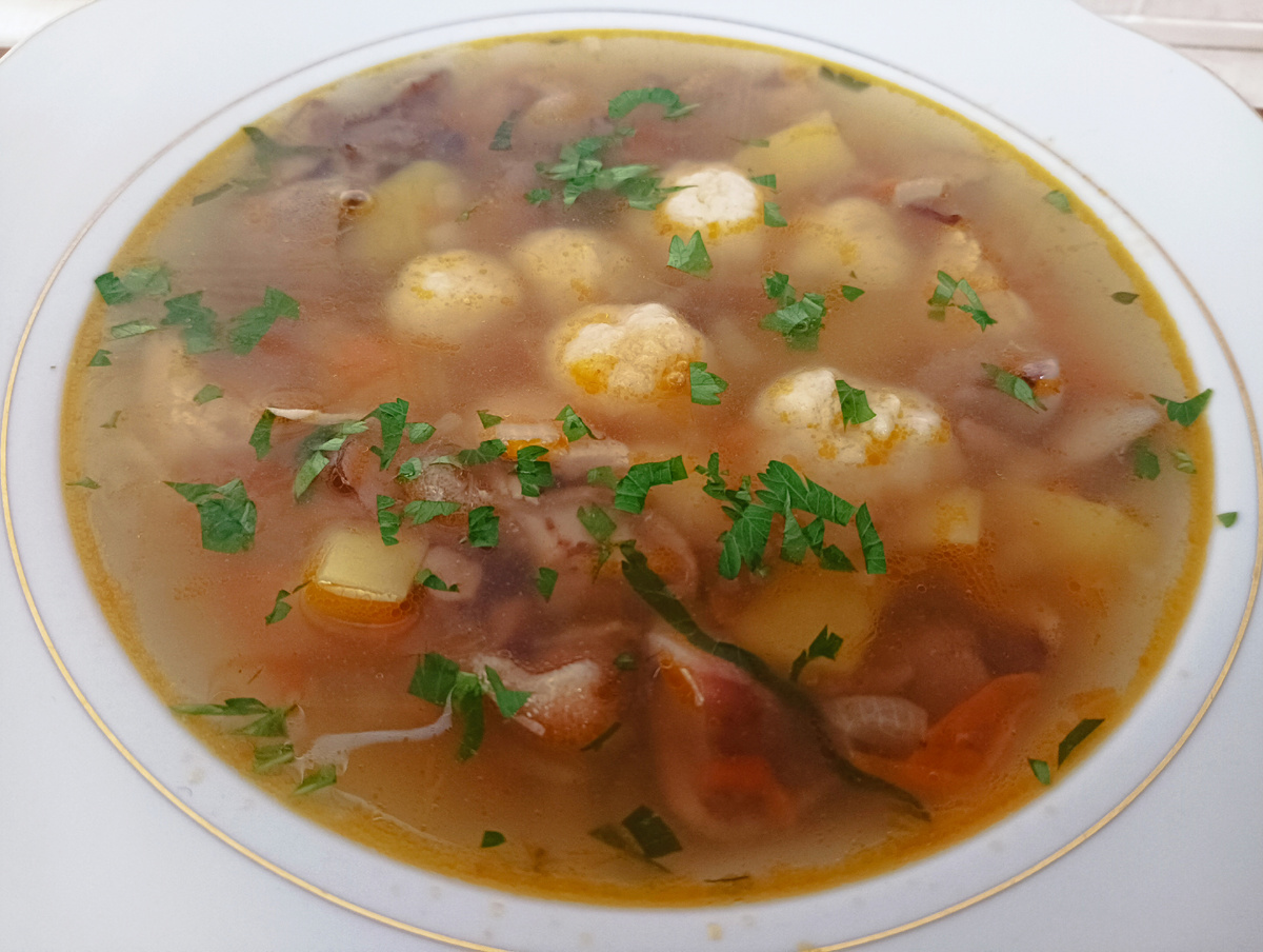 Мои домочадцы "охотятся" за фрикадельками. Они первыми исчезают из тарелки. Суп получается очень густым. Так что, подгоняйте количество ингредиентов под свой вкус.