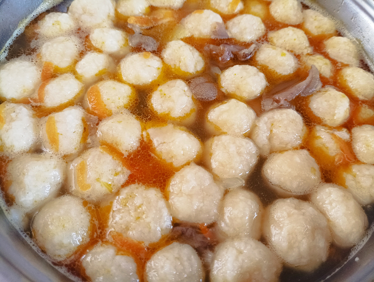 Как только сварится картофель, добавляю в суп сырные фрикадельки. Как только они всплывут — суп готов.