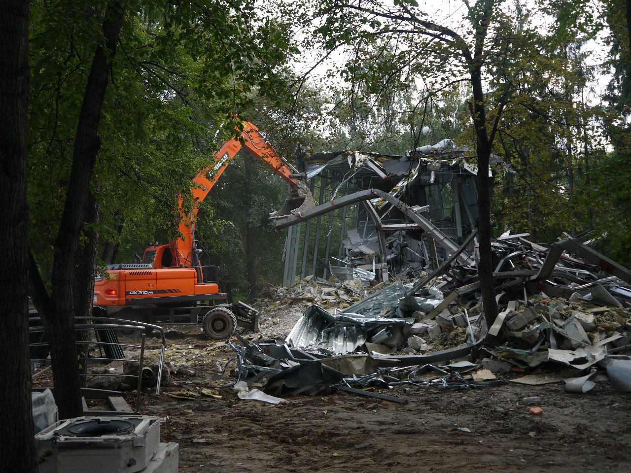 В Первомайском сквере Новосибирска начался демонтаж здания, где до конца июля этого года располагался Sabai-bar. О работе экскаватора по сносу конструкции сообщает из сквера журналист НГС Стас Соколов.
