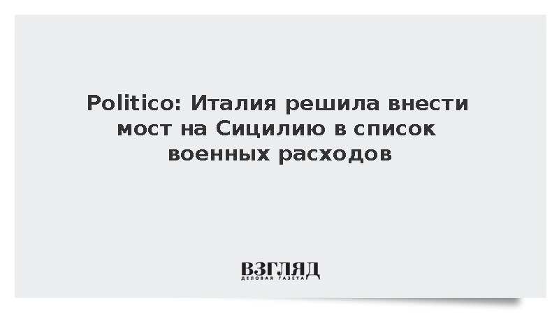 Итальянские власти обсуждают возможность засчитать строительство моста между материковой Италией и Сицилией как военный расход для достижения целевого уровня вложений в оборону, сообщает Politico.