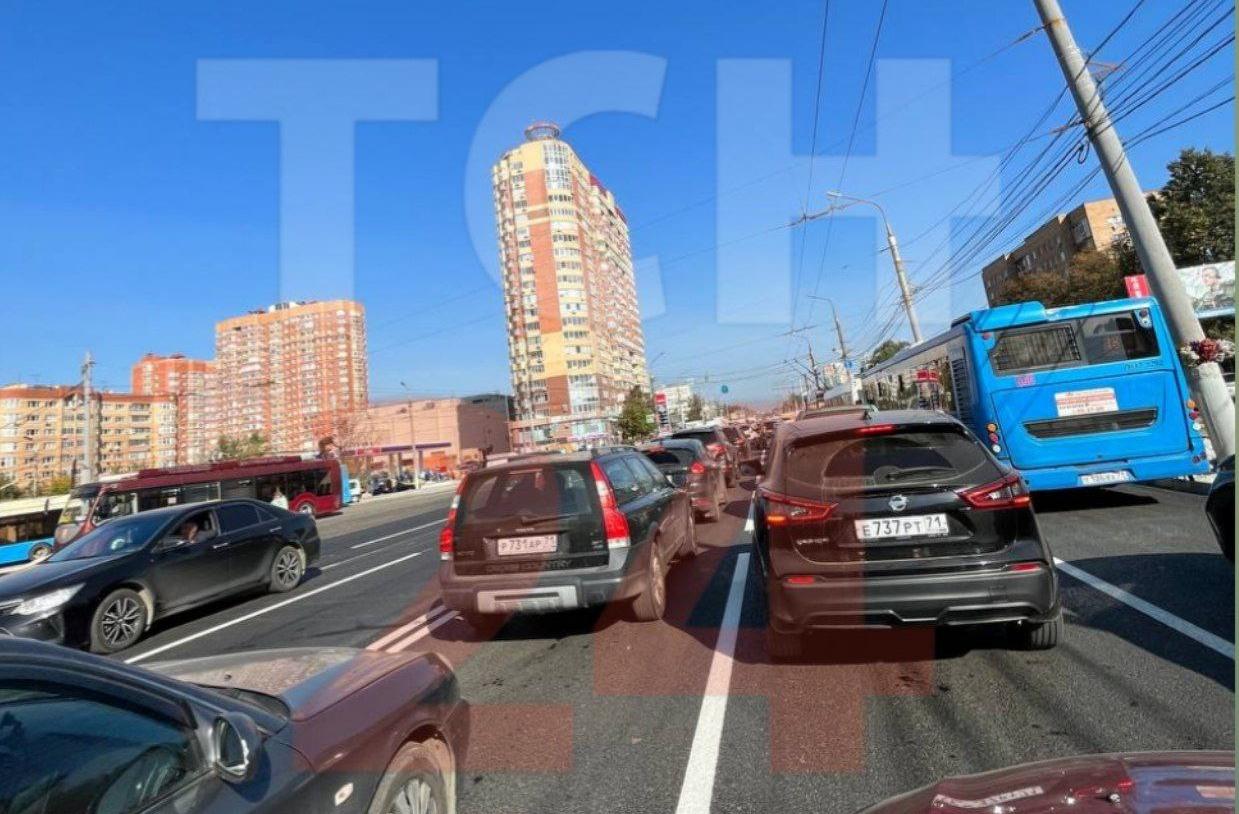 В Туле на проспекте Ленина произошла серия ДТП, которая привела к образованию гигантской пробки на участке рядом с микрорайоном Зеленстрой. Все три аварии произошли на коротком промежутке дороги: первая на троллейбусном кольце, вторая у начала моста через улицу Рязанскую, а третья возле Белорусского сквера. Эти происшествия стали причиной серьезных трудностей в автомобильном движении на данном участке.