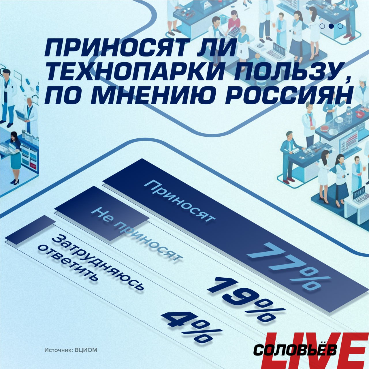 По данным опроса ВЦИОМ, об этом знает каждый 6-й россиянин. 77% из осведомлённых считают, что технопарки принесут пользу для их региона.