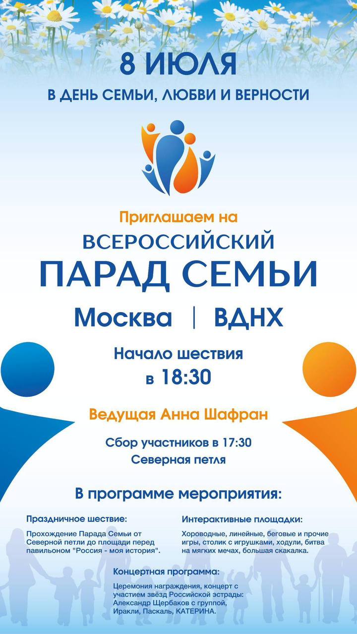 ✅ Всероссийский Парад Семьи пройдёт в столице 8 июля!