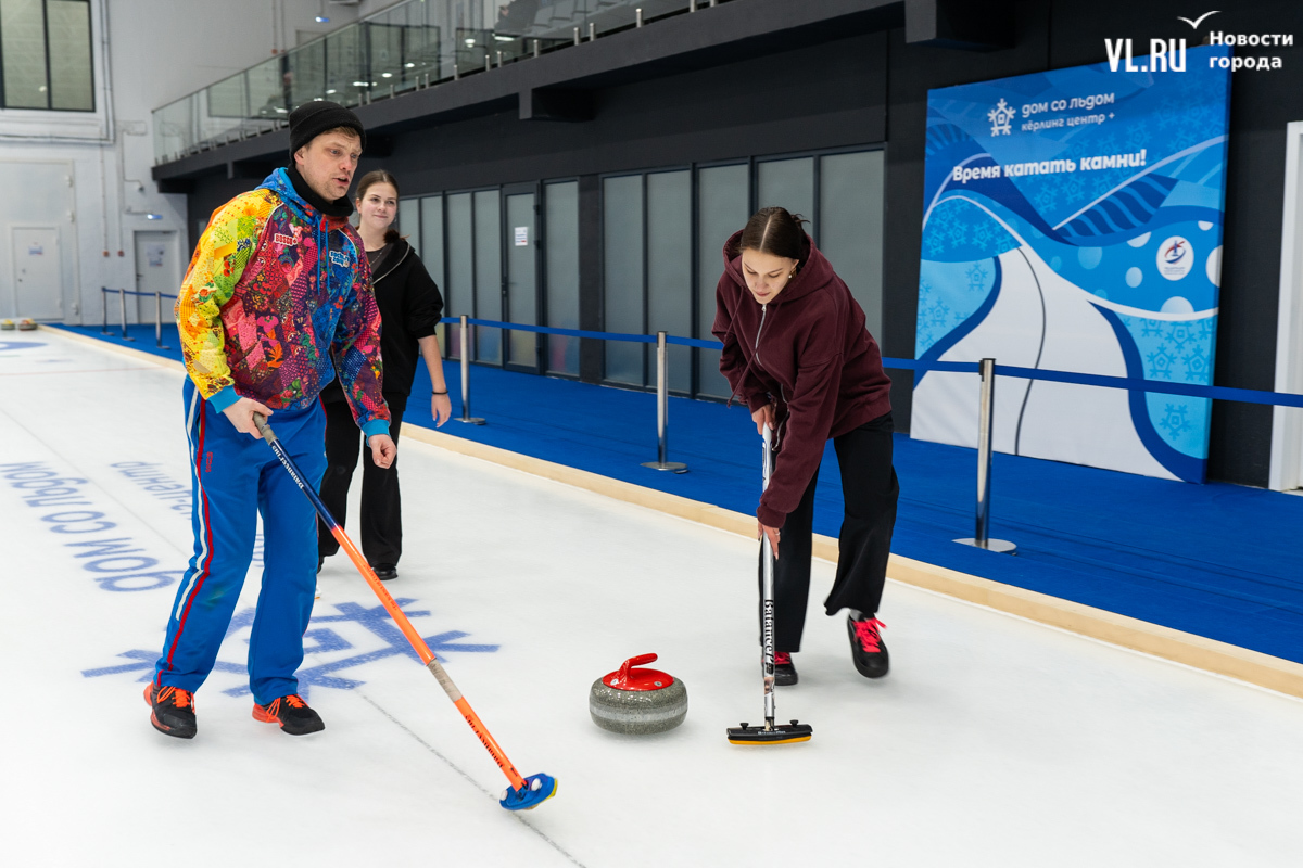 Во Владивостоке не так давно открылся кёрлинг-центр «Дом со льдом». Дети могут заниматься здесь бесплатно в секциях, а взрослые – поиграть в определённые часы за деньги. Корреспондент Новостей VL.ru тоже попробовал покатать камень и потереть щёткой лёд.