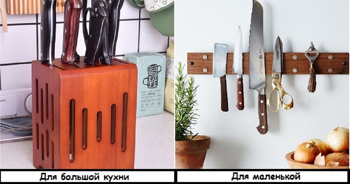 Большинство хозяек используют для хранения ножей специальные подставки или просто складывают их в ящик со столовыми приборами. Но в первом случае они занимают драгоценное место на столешнице, которое можно было бы использовать для более нужных вещей, а во втором осложняется доступ к ножам, ведь тянуться в выдвижной ящик неудобно.