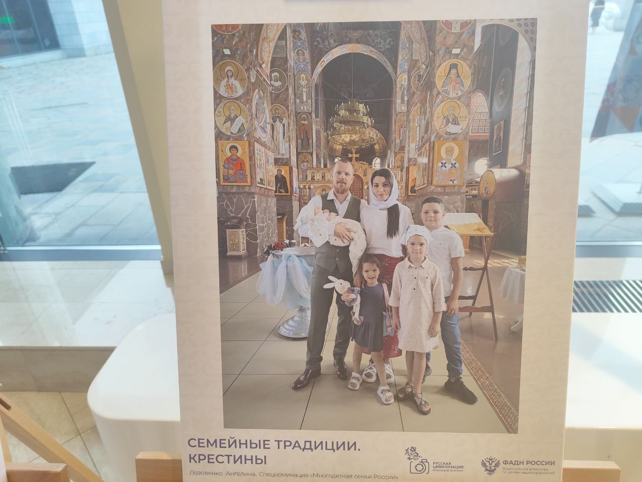 Фотографии больших семей открывают всероссийский форум с международным участием "Россия - дом народов". Через несколько минут начнется награждение многодетных семей. Гости форума собираются в большом зале Цифрового Делового пространства, в центре Москвы.