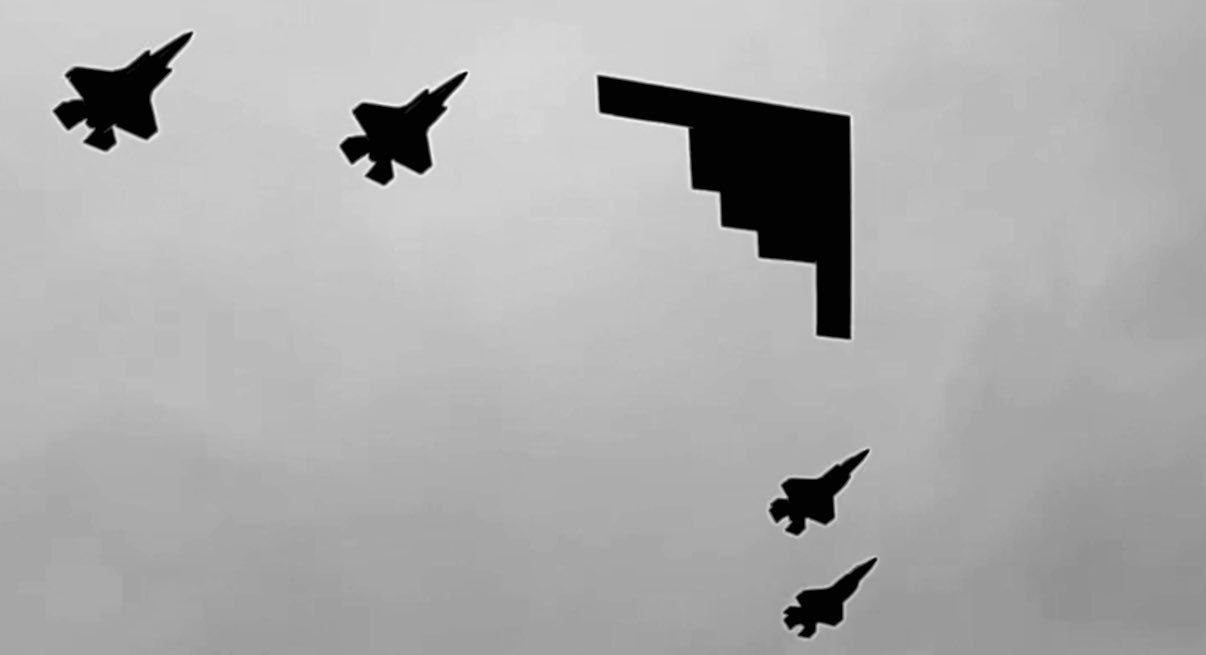 Над авиабазой Элмендорф-Ричардсон прошла группа истребителей пятого поколения F-35A Lightning II во главе со стратегическим бомбардировщиком B-2A Spirit.