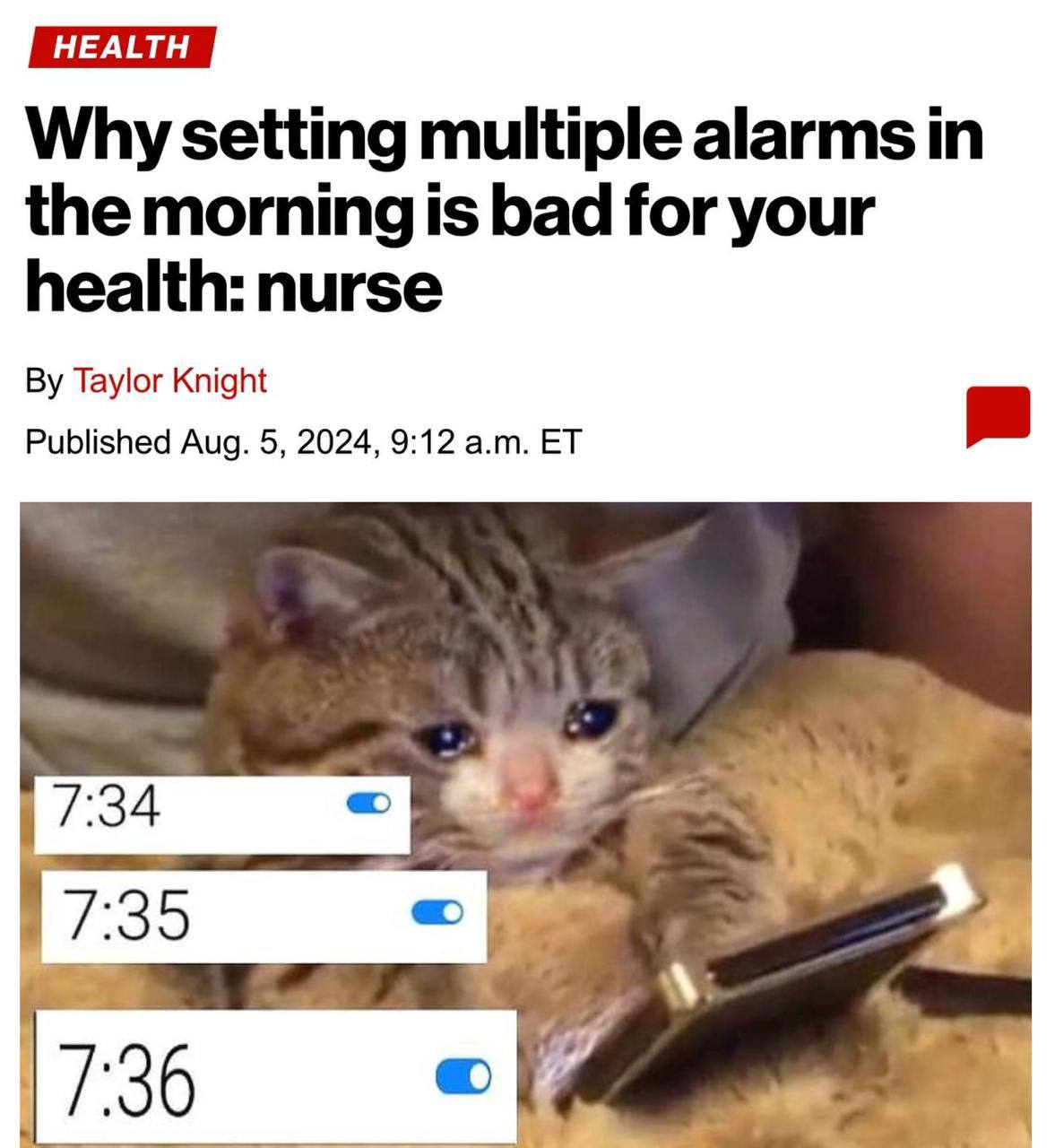 Ставить несколько будильников утром — опасно для здоровья. Об этом рассказала врач. Несколько будильников подряд сбивают фазу быстрого сна. Из-за этого появляется усталость и повышается гормон стресса. Как результат: возможные проблемы с сердцем и депрессия.