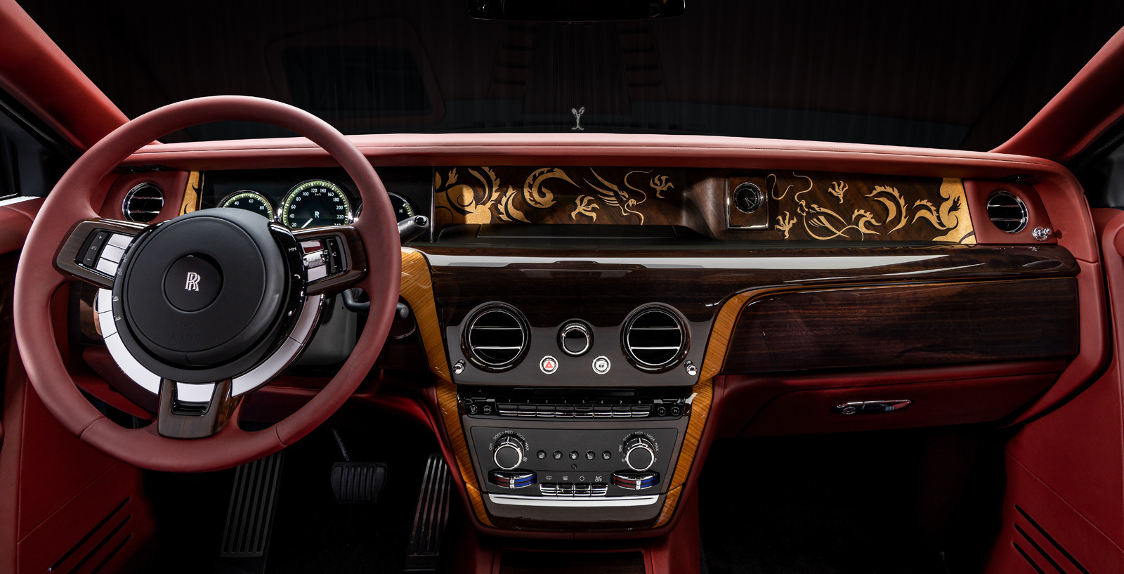 Rolls-Royce Phantom Dragon был создан по заказу богатого клиента из Китая, его разработкой занимался офис в Шанхае. Особенностью оформления стало использование изображений по мотивам древней китайской легенды (ей более 3000 лет) о двух драконах и жемчужине, история повествует о доброте и щедрости духа. Стоит отметить, что уникальный автомобиль посвящён уходящему Году Дракона, который, согласно восточному календарю, 29 января будет сменён годом Змеи.