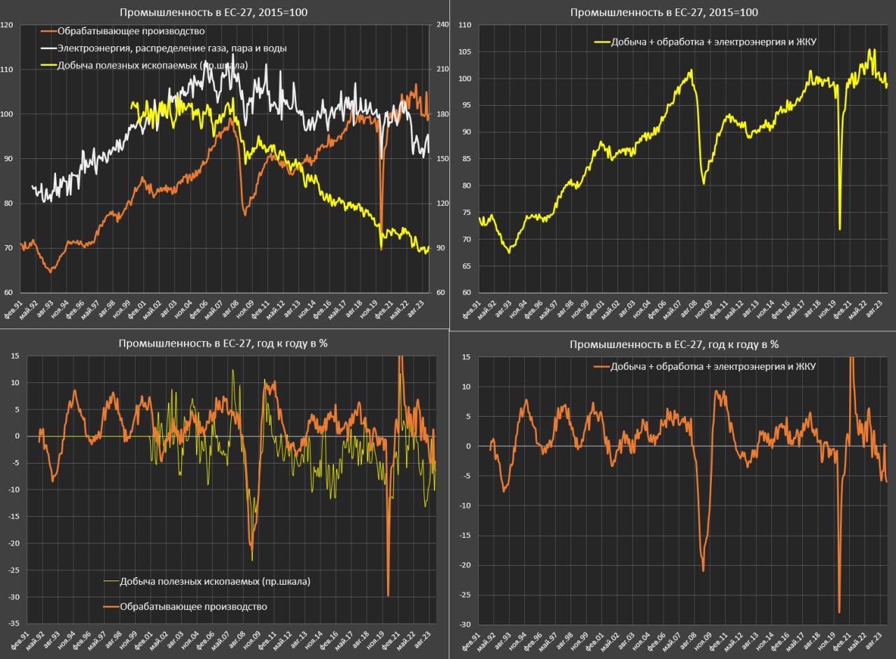 Годом ранее промышленность в Европе была на историческом максимуме, т.е. столь сильное снижение происходит от высокой базы сравнения, однако по европейским меркам это очень мощный удар.
