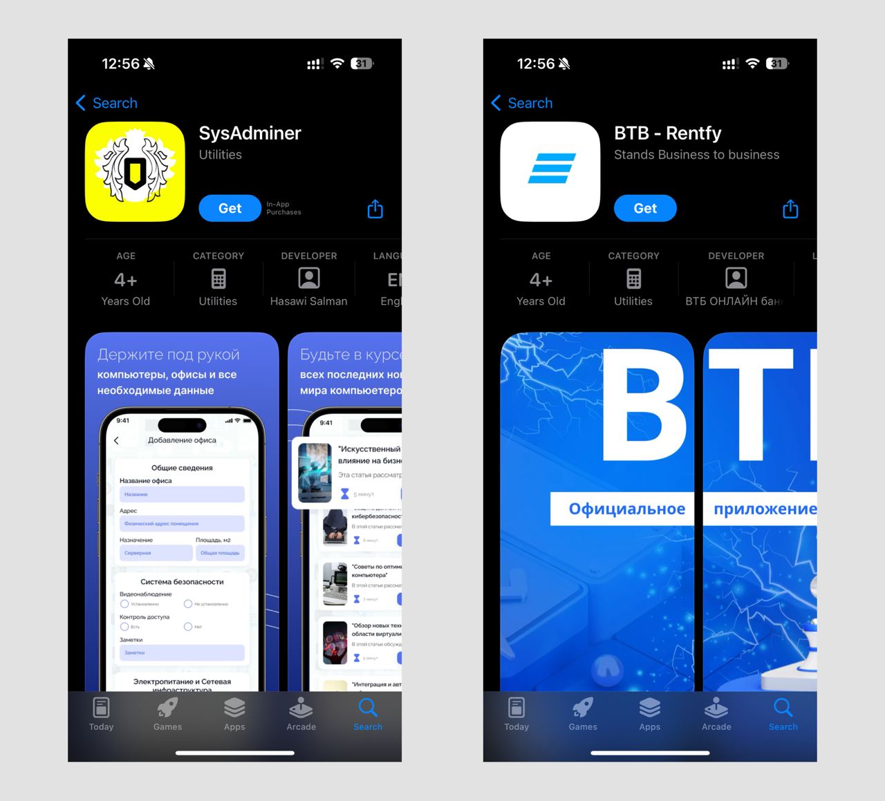 Запоминаем и не скачиваем. Новые фейки приложений ВТБ и Тинькофф, которые используют фирменную айдентику и накручивают оценки.