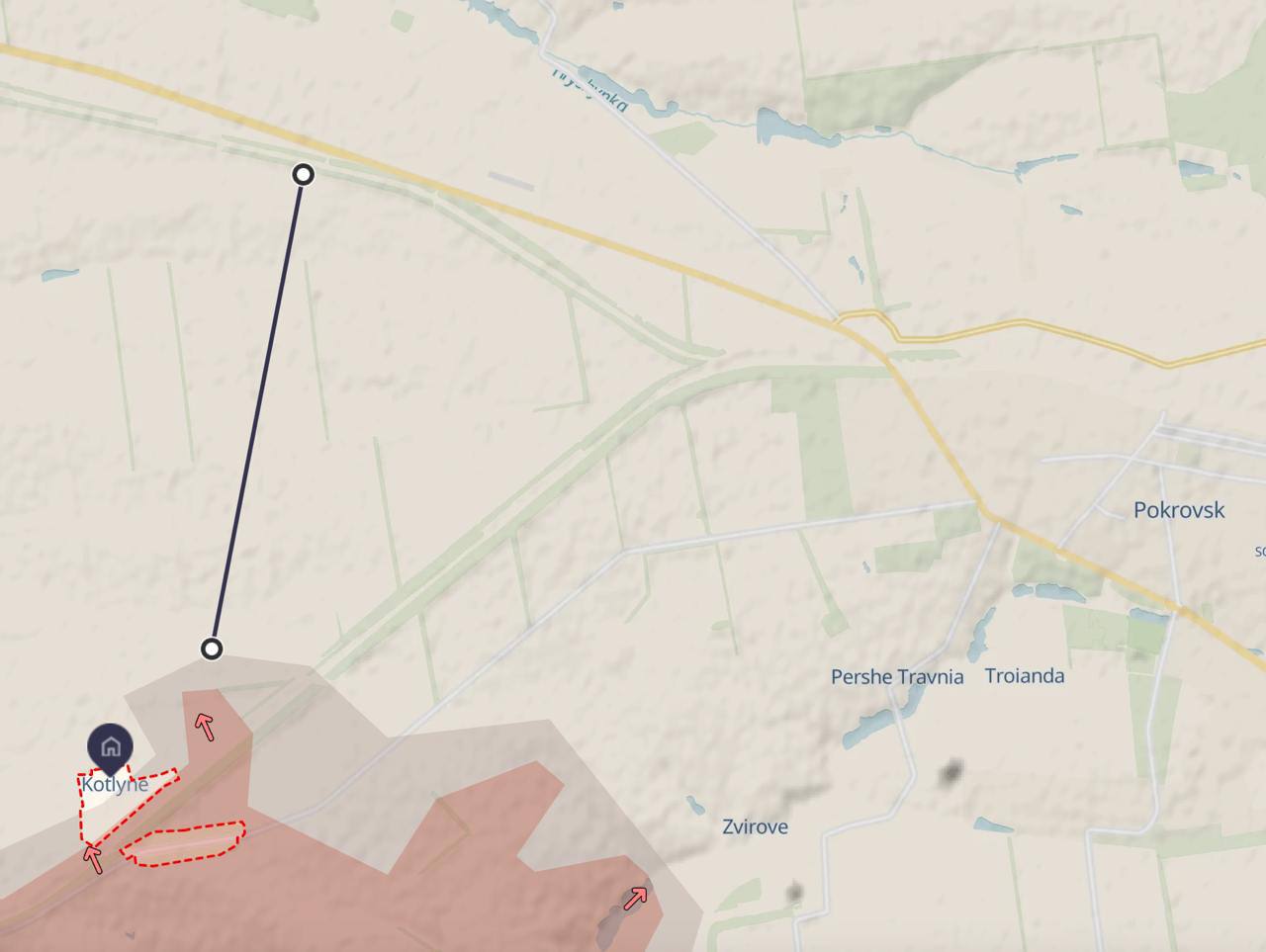 От этого села на северо-запад уже нет населенных пунктов до трассы Покровск-Павлоград. По этой трассе снабжается Покровск.