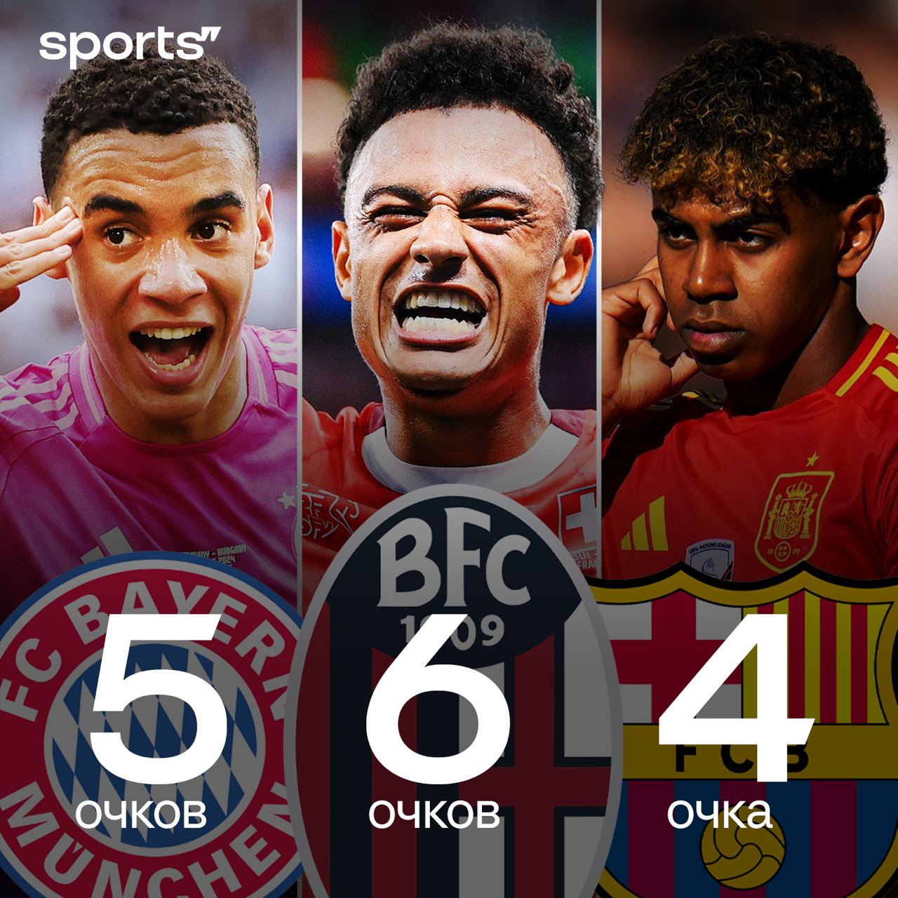 На втором месте в клубном зачете «Бавария» с 5 очками, на третьем – «Барса» с 4 баллами 👀