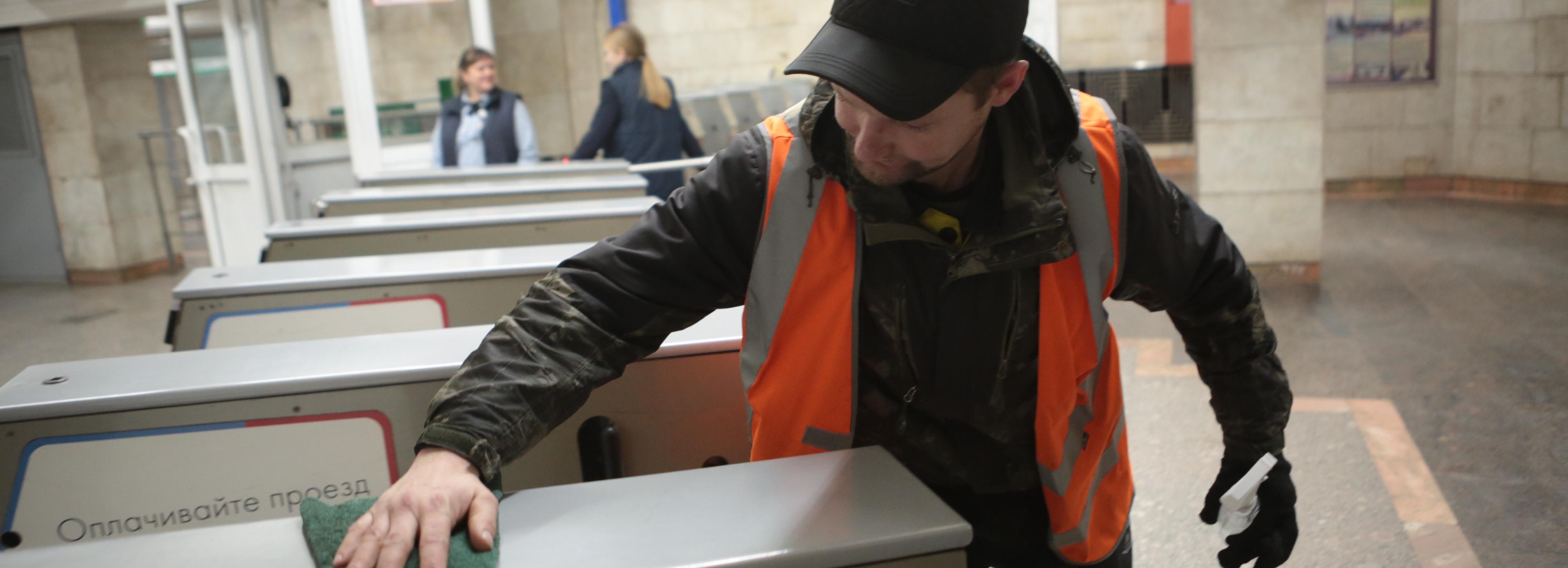 Чистоту в вагонах наводят в депо. Обычно на один состав уходит около двух часов. Но в случае необходимости быструю уборку делают на конечных станциях. Дезинфекцию проводят не только в поездах, но и на станциях метрополитена.
