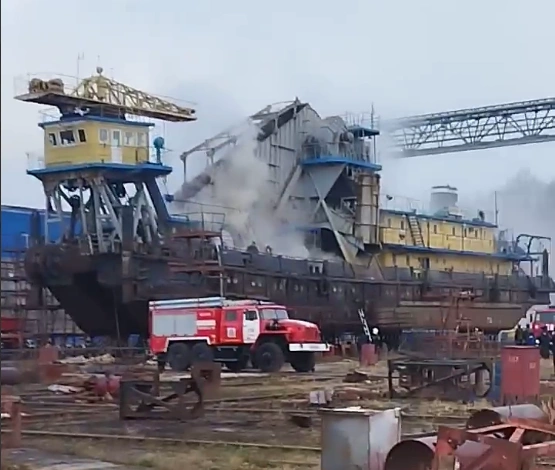 Пожар произошел на базе, находящейся на улице Орджоникидзе. Возгорание возникло в носовой части земснаряда «Инженер Крохин». Огонь повредил отделку коридора и каюты. Площадь пожара — около 30 квадратах метров.