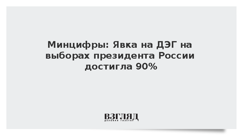 Явка избирателей на президентских выборах в ходе дистанционного электронного голосования (ДЭГ) на 10.00 мск составила 90%. Всего проголосовали 4,2 млн человек, сообщает Минцифры России.