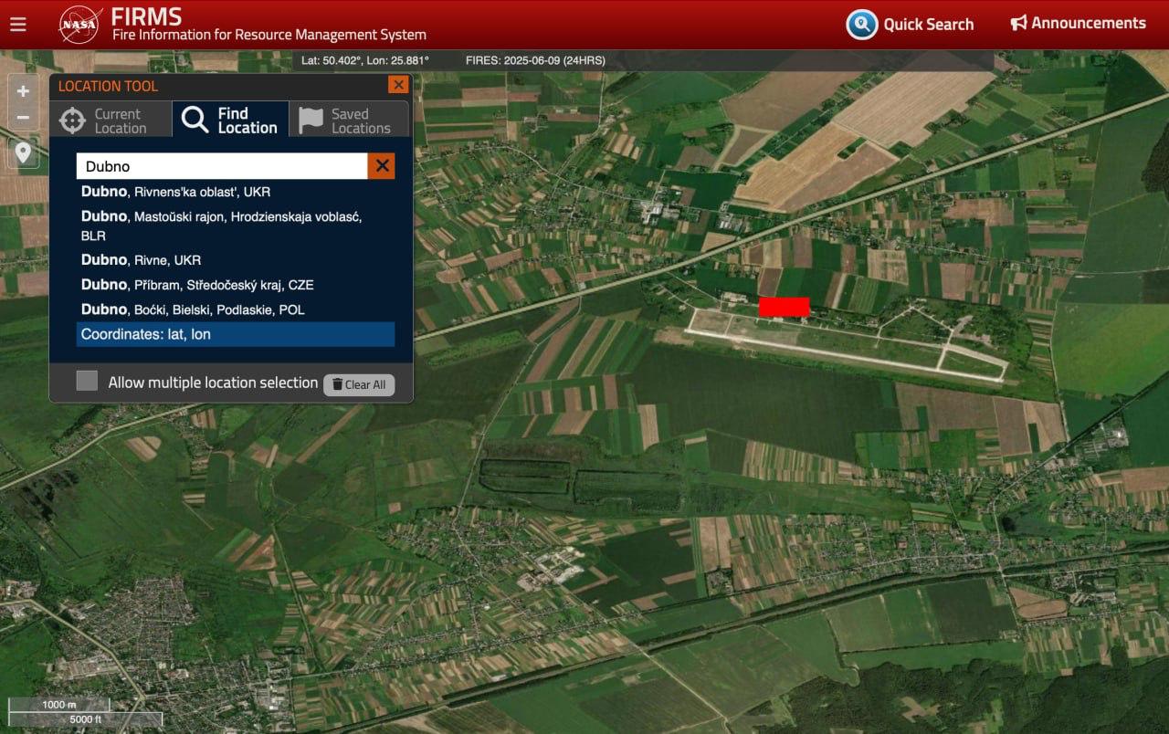 💥 Снова сообщают в взрывах в Дубно, Ровенская область. Предварительно, это был второй за сутки удар по местному аэродрому – одному из ключевых объектов, где, по сообщениям, базировались поставленные НАТО истребители F-16.