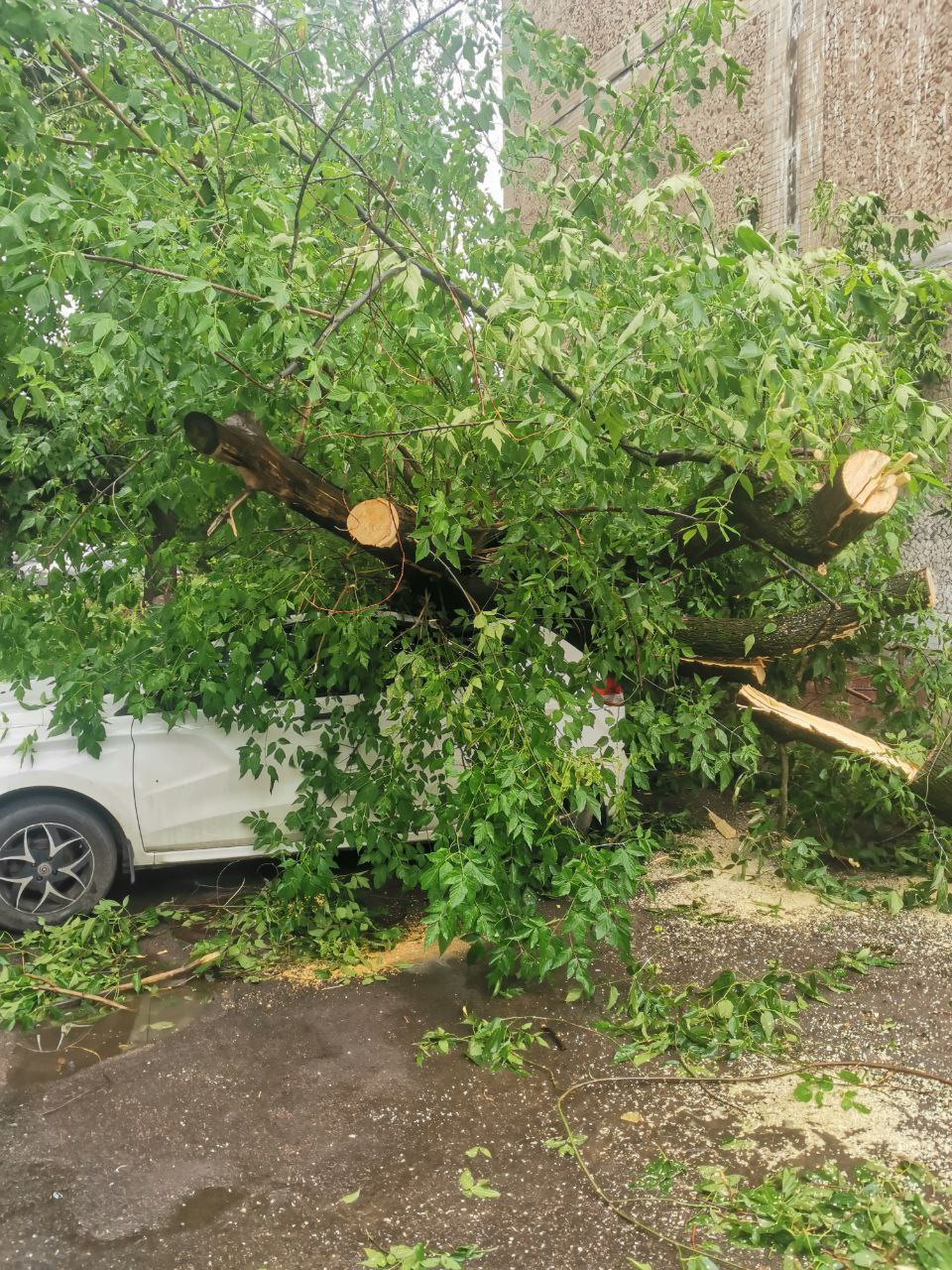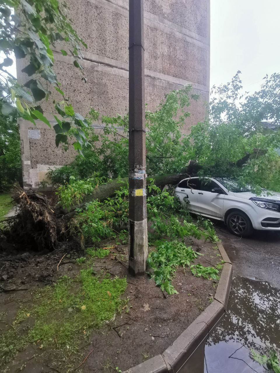 На улице Бабушкина, 111, дерево упало на три автомобиля. «Лада» белая в мясо, задний мост ушел весь», — рассказывает очевидец в группе «ДТП и ЧП | Санкт-Петербург».
