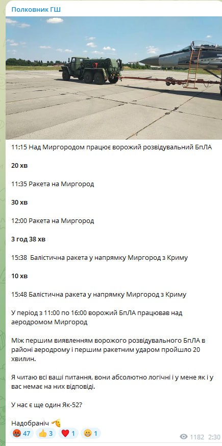 Украинский источник поделился подробностями удара по аэродрому в Миргороде