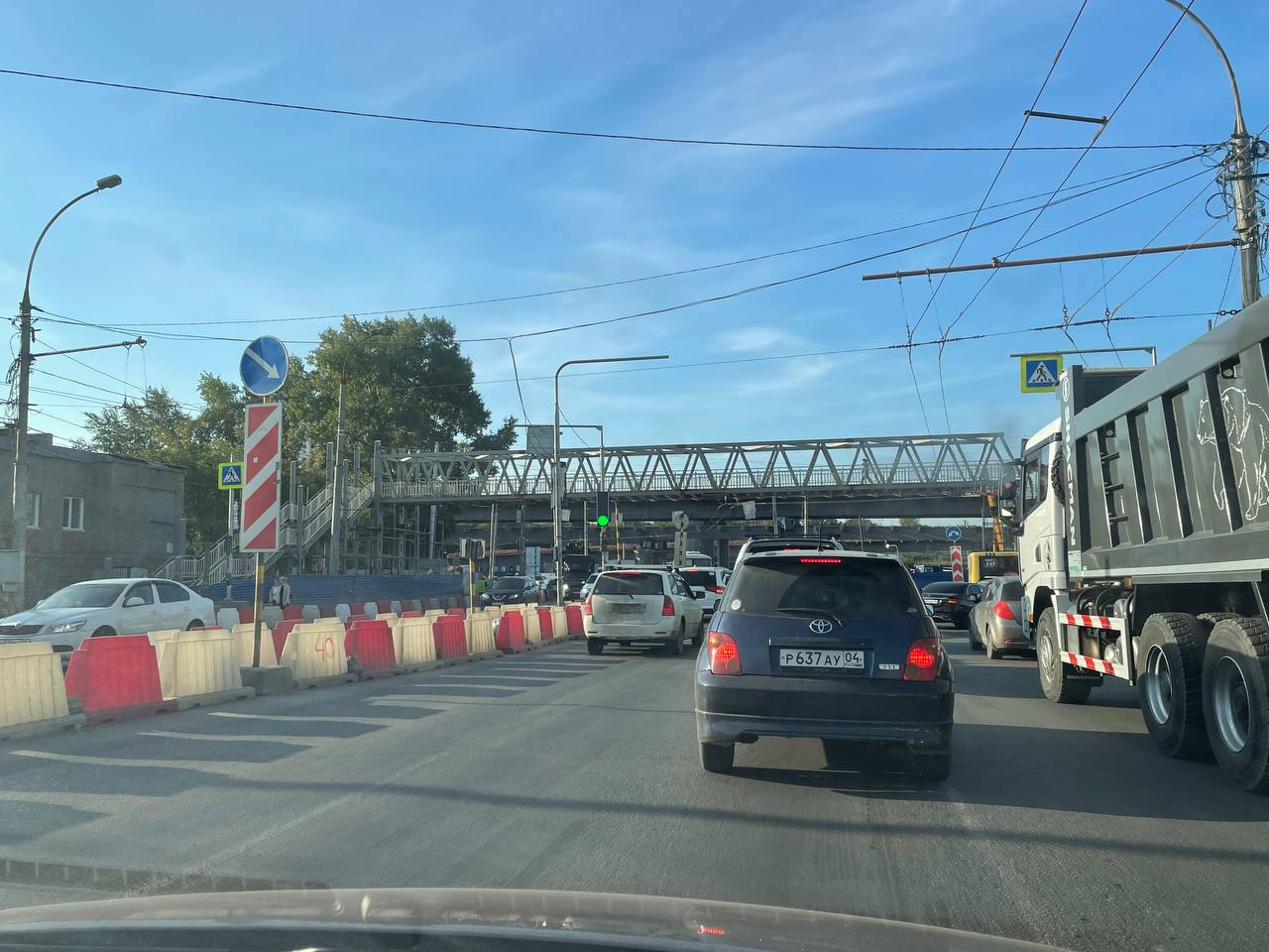 На площади Труда в Новосибирске открыли надземный переход — это одно из решений мэрии по устранению пробок на «кольце ада». Но утром на участке снова собрался затор.